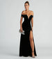 When the occasion calls for velvet. the Kerri formal velvet mermaid dress delivers with romantic classic Hollywood glamour for your next dressy night out! She features an off-the-shoulder neckline with a sultry front V-wire insert. a high-waist seam. and a form-hugging mermaid silhouette with a high-cut front slit and long hemline. The formal dress is crafted from a lined velvet fabric with luxurious softness and moderate stretch. Complete the look with a rhinestone hair clip and clutch.