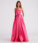 Make a memorable entrance in the Kristine satin ball gown designed to shine and photograph beautifully! Perfect for prom. black tie galas. or weddings. She features a sleeveless square neckline. tank-style straps. a gorgeous lace-up back with tie closure. and a lightly padded bust. Her flattering a-line silhouette features hidden side pockets for keeping your hands warm and pleats that lead to the floor-length hem. The formal ball gown is composed of a smooth satin woven fabric with multi-layers of tulle and satin lining for a voluminous effect. Style with rhinestone earrings and a bracelet to complete the look!