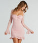 Radiate eye-catching energy in the Kristy formal glitter mini dress perfect for twirling all night out on the dance floor! She features adorable sheer fitted long sleeves with ruffled cuffs. a sweetheart neckline with a padded underwire bust. and a head-turning open back with a tie closure. Flaunt your curves in her bodycon silhouette showcasing side ruched seams and a flirty ruffled mini-length hem. The formal dress is composed of a glitter mesh fabric that sparkles and has a sewn-in knit lining. Complete the look in platform heels for a sweet sixteen or holiday party!