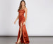 Let your arrival be known in our luxe Ksenia! Her satin sheen will light up any room and her thigh-high slit adds a flirty little touch.