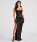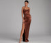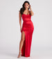 Flaunt your natural beauty in our fabulous Lala dress! She features a trendy pleated cowl neckline with a slim-fit bodice. a floor-sweeping silhouette with a semi-high slit that shows just a hint of skin. and a form-hugging fit. The smooth satin fabric offers a moderate stretch. Pair this gorgeous dress with a sleek ring set to add some glamour to your look for your special occasion.