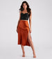 Lavish Life Satin Slit Midi Skirt