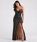 Give everyone something to talk about when they catch sight of you in the Leanne formal dress to bring radiance to dinner parties and ceremonies! She stuns in her sleeveless V-neckline. adjustable spaghetti straps. and a surplice bodice with a pleated side seam to accentuate your curves. Her form-hugging fit at the hips leads to the asymmetrical wrap long hem with a sultry front slit. The formal dress is composed of a glittery lace mesh fabric with a knit lining and minimal stretch. Style with hoop fringe earrings and heels to complete your dressy look!