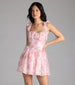 The Leoni floral skater dress captures romantic allure with a modern flair that'll have all eyes on you! Designed with a gorgeous lace-up back that turns heads. a corset bodice to snatch your waist. and a voluminous silhouette made for twirling.