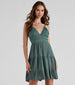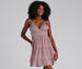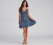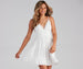 Flowy and flirty! Twirl all day in this crochet V-neck skater dress featuring a sleeveless bodice with adjustable spaghetti straps. an open back with tie closure. and a tiered short hem. Composed of a gauze woven fabric with an inner lining. Finish the look in trendy mules.
