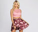 Perk up classically elegant florals with a little sparkle-dusted lace in our lovely Lianne skirt and top set. She features a glitter-embellished tank-style top with lace crochet overlay. a lightly padded bust. and a rounded neck that closes with a single button at nape of neck. Taffeta-style floral skirt has an A-line silhouette and features a back zip and a double-layer curved hem. Lianne has a partially lined tank and a fully lined skirt with minimal stretch.
