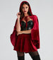 This Halloween. dress up as Lil Red looking like a beauty on your way to Grandma's house! This velvet cape will give your costume the perfect blend of sultry and flirty featuring a hooded neckline with a tie-front closure and an open-front design. Complete the costume with the velvet skirt. PU corset. and wicker basket.