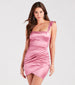 Looking Pretty Ruffled Strap Satin Mini Dress