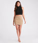 Keep your style lowkey edgy and cool in this woven mini skirt for those casual days! It features a flattering high-rise waist. back zipper closure. bodycon silhouette. and trendy side flap pockets along the fitted hem. Complete the look in a basic short sleeve tee and sneakers.