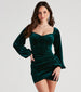 Bring the luxe style to your dinner date look with this chic velvet mini dress! It features a sweetheart neckline with a padded bust. a corset-designed bodice with piping at the bust. long balloon sleeves. a short hem with a wrap-front design. and a curve-hugging. bodycon silhouette. The smooth velvet fabric offers a moderate stretch. Complete the outfit in this mini-length dress with strappy stilettos.
