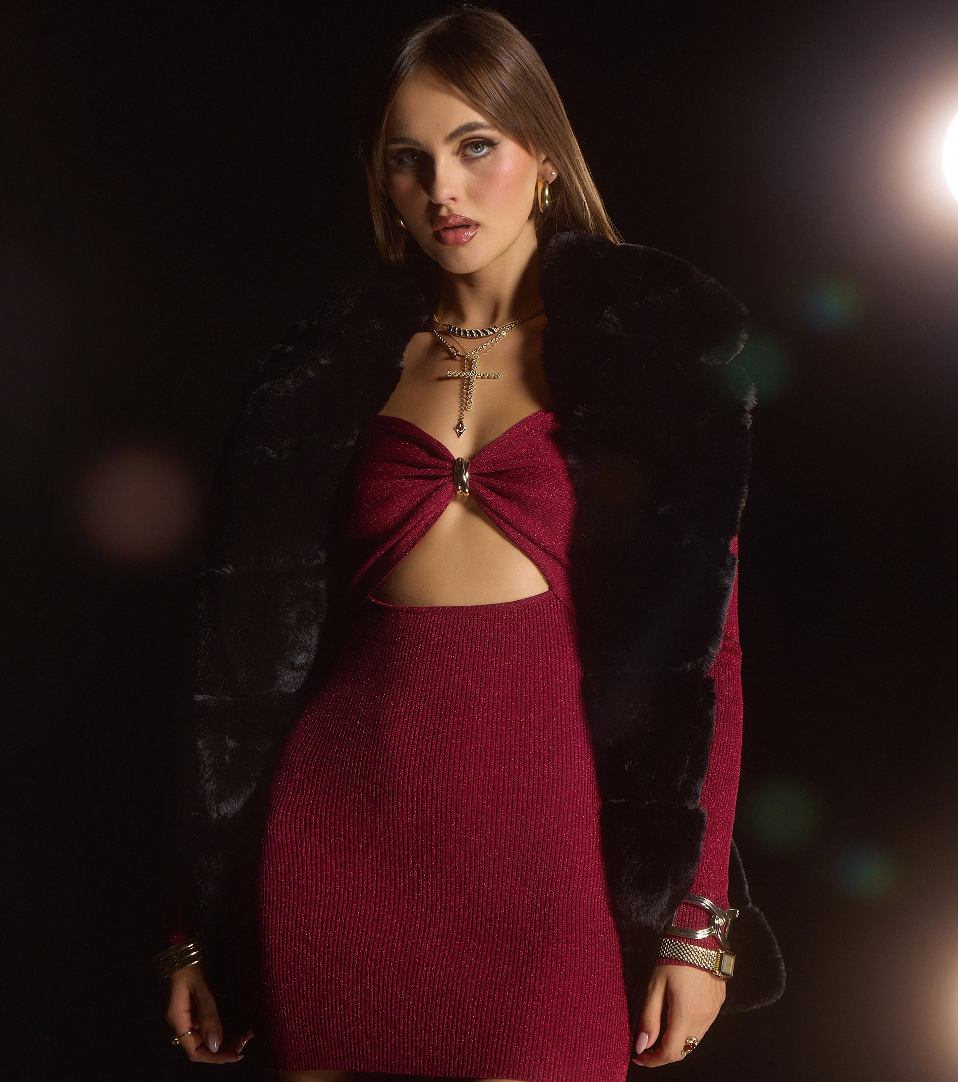 For the days your outfit needs a little drama. This long faux fur vest serves major texture play with striped faux fur panels and a tie-waist belt that pulls it all together—literally.