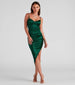 Bring the luxe sleek vibes to your look with this stunning satin midi dress. The knee-length dress features a sleeveless sweetheart neckline with padded cups. adjustable spaghetti straps. a fitted high waist seam. ruched detailing down one side. a midi-length asymmetrical hem creating a chic side slit. and a curve-hugging silhouette. Complete the outfit with strappy stilettos.