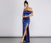 Introducing our Madonna Gown! She is designed with a pleated straight neckline with a drape overlay. off the shoulder sleeves. and a fitted bodice. Her cups are padded. and she features a vertical princess seam that creates a flattering fit. Slanted vertical seams at the waist line create a form fitting silhouette. and her hem is floor length. and features a side slit design that hits high thigh. She is composed of a satin like material that offers moderate stretch.