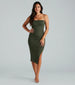 For casual plans and outings. make your look cute in this sleeveless midi dress perfect for inspiring your inner fashionista! It features a square neck. spaghetti straps. a form-hugging fit. a side ruched seam that accentuates your curves. a side slit. and a midi-length hem. Complete the look with a crop jacket and heels!