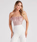 Such a flirt! This strapless corset top will bring your cuteness to a new level! It features a marabou feather sweetheart neck trim. a built-in padded bust with underwire. flexible boning. and a cropped hem. Style with chic wide-leg pants for a cocktail party.