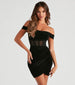 On the short Marla party dress. velvet is the star of the show! Showcase timeless glamour in her off-the-shoulder neckline. corset mesh-illusion bodice with flexible boning inserts. and a sultry. faux wrap hem that gives you the appearance of an hourglass figure. The formal dress is composed of a lined velvet knit fabric with a moderate stretch. Complete your dressy look with a gorgeous rhinestone clutch.
