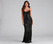 Light up the night with a formal sequin dress that elevates your special evening look. Marleigh features a dazzling damask sequin pattern. a sleeveless V-neckline. supportive padded cups. and spaghetti straps that lead to a cross-back strap design. Her back features a partially open design with tie-back straps. Her slim-fit bodice leads to a flared trumpet hem that brings the drama. Complete the look in this formal long dress with a sphere clutch and rhinestone heels.