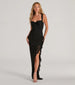 Take everyone's breath away in the Megan crepe slim formal dress at black tie weddings or parties! Featuring a delicate lace sweetheart neckline and underwire bust for a flattering fit. this dress also includes shoulder straps and a high front slit adorned with lace ruffles. A slim silhouette and floor-length hem complete this luxurious look. Style this formal dress with rhinestone earrings. a bracelet. and block heels.