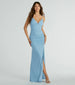 Prepare for glowing praise when you step out in the Melinda mermaid glitter formal dress at banquets or weddings! Made with glitter knit fabric. this floor-length dress will ensure you stand out in any formal event. The V-neckline and adjustable spaghetti straps create a sensual allure. while the high front slit and mermaid silhouette accentuate your natural curves while flaunting some skin. Complete the look with a necklace.
