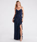 With a romantic allure and a flattering silhouette. the Melrose formal dress is the perfect pick for bridesmaids or wedding guests! She features a sleeveless V-neckline with ruffle trims. adjustable spaghetti straps. and a mermaid silhouette with asymmetrical ruffles leading to a high front slit and floor-length hem. The formal long dress is composed of an airy mesh fabric with a stretchy knit lining. Complete the look in basic block heels and dainty jewelry.