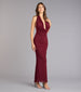 Rich. sultry. and unforgettable—this halter maxi dress stuns with a draped cowl neckline. curve-hugging fit. and open back detail that brings the drama for any formal affair. Complete the look with jewelry and stiletto heels.