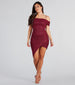 A glitter mini dress to dazzle the night away! This showstopping mini-length dress features an off-the-shoulder neckline. spaghetti straps. a front foldover design. and ruched side seams for a bodycon silhouette and a trendy asymmetrical hem on glitter mesh fabric. Complete the look in platform heels for a night on the town!