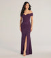 Radiate elegance in a long mermaid glitter dress that features an off-the-shoulder neckline with a sweetheart bust. short sleeves. a corset-like bodice with flexible boning for structure. a wrap silhouette. and a high side slit. Complete the wedding guest outfit with a rhinestone clutch.