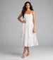 Take a ride on the cute side in this floral eyelet midi dress perfect for shower celebrations. brunch. or graduations! The whimsical tie-back design perfectly complements the ruffled A-line silhouette. making you feel feminine and enchanting.