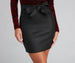 Take on a new bold look in this coated mini! This skirt is all chic with eye-catching detail featuring a high-rise. tie-waist on a short-length hem on a coated faux leather fabric. Complete the daring look in a bodysuit and booties.