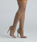 Take your style to new heights in these over-the-knee boots! The faux suede boots feature a pointed toe. a stiletto heel. and closed ankle. and a sheer fishnet overlay with sparkly rhinestone embellishments on a thigh-high shaft with a non-slip grip lining trim. Complete the look in a sexy short dress for a night out or dressy party!