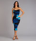 A statement without saying a word—this floral print midi dress stuns with a sleek cowl neckline. curve-hugging fit. and striking oversized blooms. Equal parts romantic and dramatic. it's perfect for dinner dates or semi-formal events.