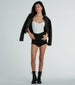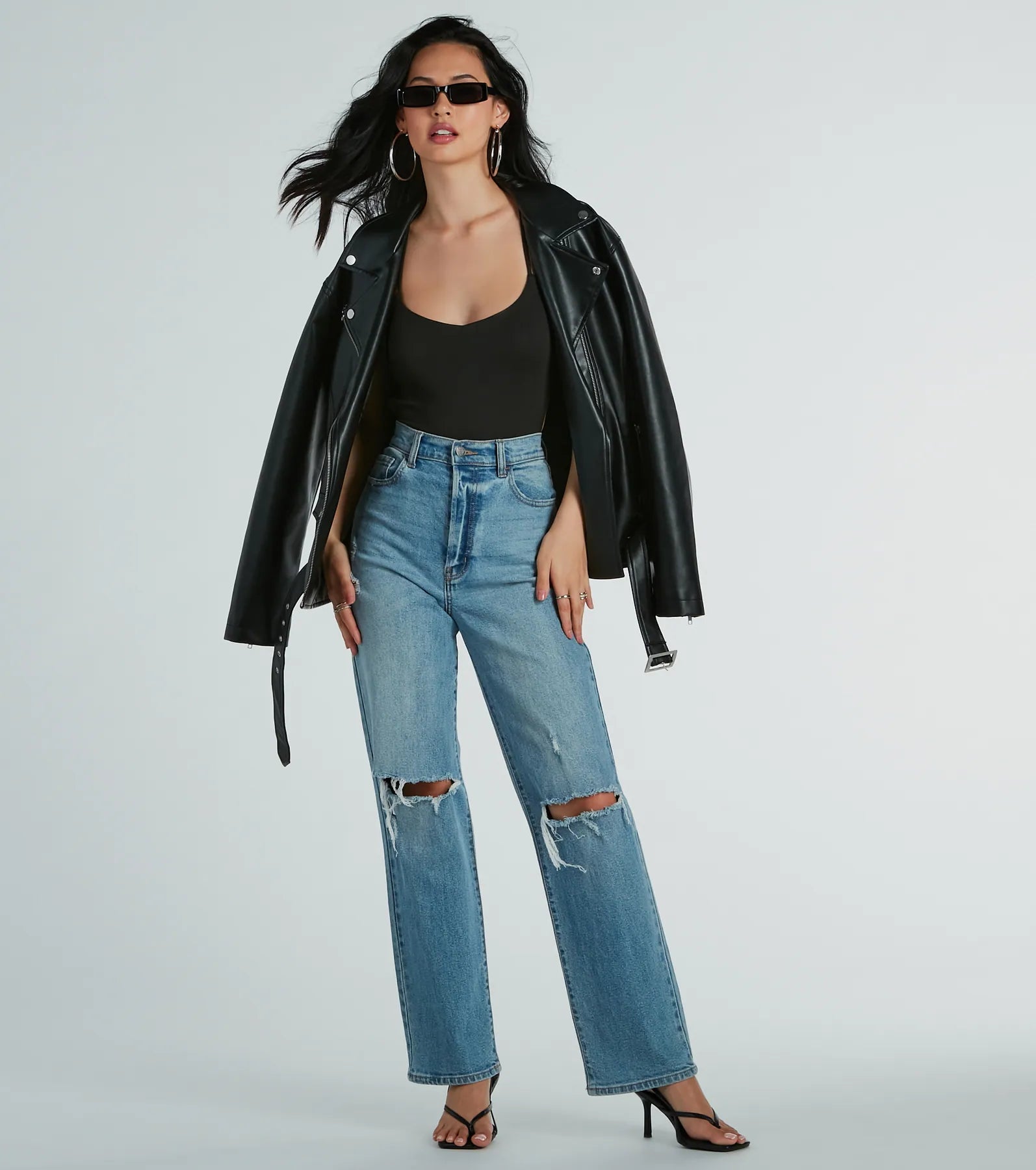 Create iconic night-out 'fits with this sexy strappy back bodysuit! Designed with a stretchy brushed knit fabric. this sultry bodysuit features a sleeveless V-neckline and spaghetti straps that lead to an alluring open-back design of cross-back straps and lower-back bar straps. Style this form-hugging bodysuit with boyfriend jeans and a faux leather jacket for bar-hopping!