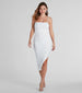 This isn't your average dress! Stand out in this chic faux pearl mesh midi dress featuring adjustable spaghetti straps. a square neckline. a bodycon silhouette. and ruched seams to flatter your figure. while the side slit and midi-length hem add a touch of drama. Complete the look with a ring set for a birthday or outdoor cocktail party.