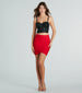 This sultry bandage mini skirt will have you looking oh-so-snatched! It features a high-rise waist. a figure-flaunting wrap-front silhouette with a mini-length hem. and a curve-hugging fit. The bandage knit fabric offers a chic sculpted look and plenty of stretch. Complete the outfit with a bustier and heels.