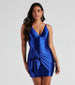 Make a striking impression with a formal mini dress that is perf for raising a toast at cocktail hour! Oksana features a sleeveless V-neckline with padded cups. tank-like shoulder straps. vertical seams at the bust. and a mini-length silhouette with a draped ruffle accent. The dress is composed of a lined satin fabric that offers a form hugging fit with minimal stretch. Complete look with rhinestone heels and a rhinestone bracelet.Â