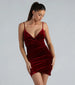Have one more perfect night in this velvet mini dress! The stylish short dress features a daring V-neckline. adjustable spaghetti straps. a side pleated seam. and a body-hugging silhouette. Make a bold statement in this sultry mini dress that is sure to turn heads! Style with a clutch and sparkly heels.
