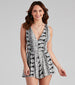 Have a passion for paisley? Travel to your next destination in this boho sleeveless romper featuring a V-neck. wide shoulder straps. dual elasticized lattice cutouts on the side. a partial open-back. and a form-fitting silhouette. Complete the look in lace-up heels.