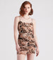 Jet set off to paradise with this fabulous crop top packed in your carry-on! It features a sleeveless square neckline. bungee spaghetti straps. ruched side seams. a fitted. cropped hem. and a tropical palm leaf print that radiates vacay vibes. Style with the matching mini skirt!