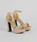 Strut into your next party with all the glam vibe in these fab rhinestone platform heels! They feature an open almond-shaped toe with a strap. a thin adjustable ankle strap. a closed back. a bold platform sole. an ultra-tall block heel. and all-over rhinestone embellishments for that glam shine. The heels are composed of a faux leather material with a subtle cushioned insole. Style with a little black dress and a rhinestone belt to tie the look together!