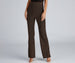 You'll be party-ready in these fab metallic glitter pants! They feature a high-rise waist. a form-hugging fit. and flared pant legs. The glitter knit fabric offers plenty of stretch. Complete the look with the matching blazer and rhinestone statement earrings.