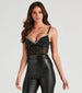 You'll be ready to party all night long in this alluring cropped corset top! It features a sleeveless sweetheart neckline with a bustier bust. structured and padded cups. adjustable spaghetti straps. a sheer corset-designed bodice. and all-over rhinestone. sequin. beaded. and faux pearl embellishments for a major glam moment. The sheer mesh and knit fabrics offer a moderate stretch. Style with faux leather pants and clear heels.