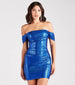 Stand out in the glistening sequins that cover the Paulina party dress! She features an off-the-shoulder neckline with non-slip grip lining. a sexy bodycon silhouette. a side pleated seam. and a mini-length hem. The party dress is designed with a sequin-embellished mesh fabric to give you the perfect sparkle and has a stretchy knit lining. Complete the look for birthdays or a night out with sleek platform heels.