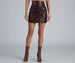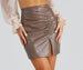 The perfect ruched skirt for adding stylish detail to your look! It features a high-rise waist. slit accent. bodycon fit. and a mini-length hem. Complete the look with a sweater and booties.