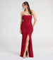 Bring luxe glamour to your formal affair in the Perry glitter knit mermaid dress that radiates an elegant shine. The floor-sweeping silhouette features a ruched wrap-front with a high slit for added allure.