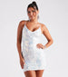 You'll always turn heads in the Phoenix sequin party mini dress at the club or as the birthday queen! She features a sleeveless V-neckline. dual bungee spaghetti straps. a sexy open back with strappy details. and a mini-length bodycon silhouette that flaunts your gorgeous curves! The party dress is composed of a sparkling sequin-scroll pattern on mesh fabric and includes a stretchy knit lining. Complete the look with a glam necklace. bracelet. and earrings for extra shine!