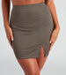 This adorable knit mini skirt will bring the preppy fall vibes to your looks! It features a high-rise waist. a short. curve-hugging fit. a chic side slit. and an all-over jacquard houndstooth print. Style with a corset top. a cropped cardigan. and mules.