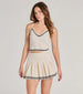 Shop Matching Sweater And Bottom: Preppy Please Striped Button Crop Sweater. Preppy Please Striped Pleated Knit Skort