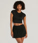 You'll be the prettiest cutie in this high-rise lace skort! Made from a delicate lace fabric that brings a romantic allure. this mini skort boasts a flattering A-line silhouette with a layered ruffled mini-length hem and shorts lining for comfort and coverage. Complete the look in a cute crop top and sandals!