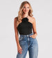 Create a pretty spring look with this sleeveless bodysuit featuring a halter neckline with tie-back closure. a statement rose on the front. a partially open back. and a form-hugging fit. Style with a sleek mini skirt for a lunch with the girls!