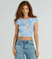Capture the beauty of a picturesque landscape in this effortlessly chic backless crop top! The airy sheer and stretchy mesh fabric features a country scenic print for those trendy coquette vibes. The crop top has a crew neckline. short cap sleeves. an alluring open back to catch all the glances. and a form-hugging fit for a snatched look. Style with straight-leg jeans.